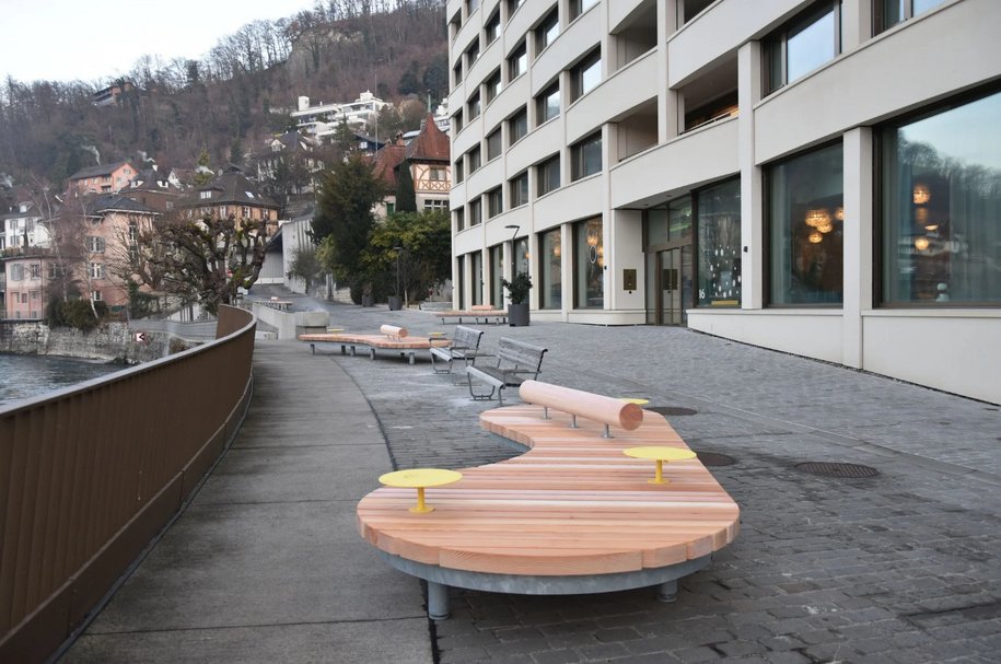 Die speziell angefertigten Sitz- und Tischelemente aus Holz schaffen geschützte Aufenthaltsbereiche und signalisieren, dass der Strassenraum nicht primär dem Durchgangsverkehr dient. Rettungsgassen für Feuerwehr und Sanität bleiben jederzeit gewährleistet. Nach einer Eingewöhnungsphase folgen Verkehrserhebungen sowie Befragungen von Anwohnenden und Strassenbenützenden; auch Rückmeldungen aus der Bevölkerung fliessen in die Auswertung ein.